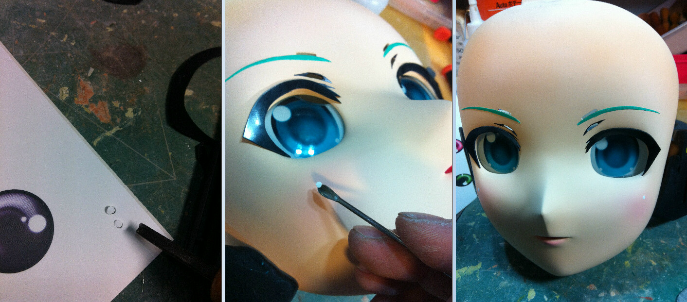 目穴を板で裏打ちして、大体の目穴位置のアタリを描き込んだら、