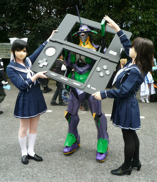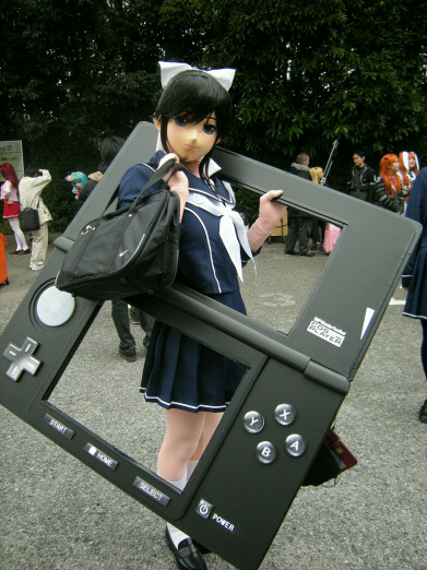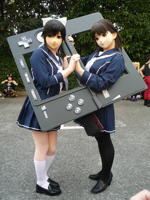 そしてその武器を肩に背負い外部スピーカーON!「ラブプラスモード」のDSから皆口裕子ヴォイスが流れ出す。 ・・・視界狭く密閉された頭部中からでも、方々からの「好意的な反応」が伺える。